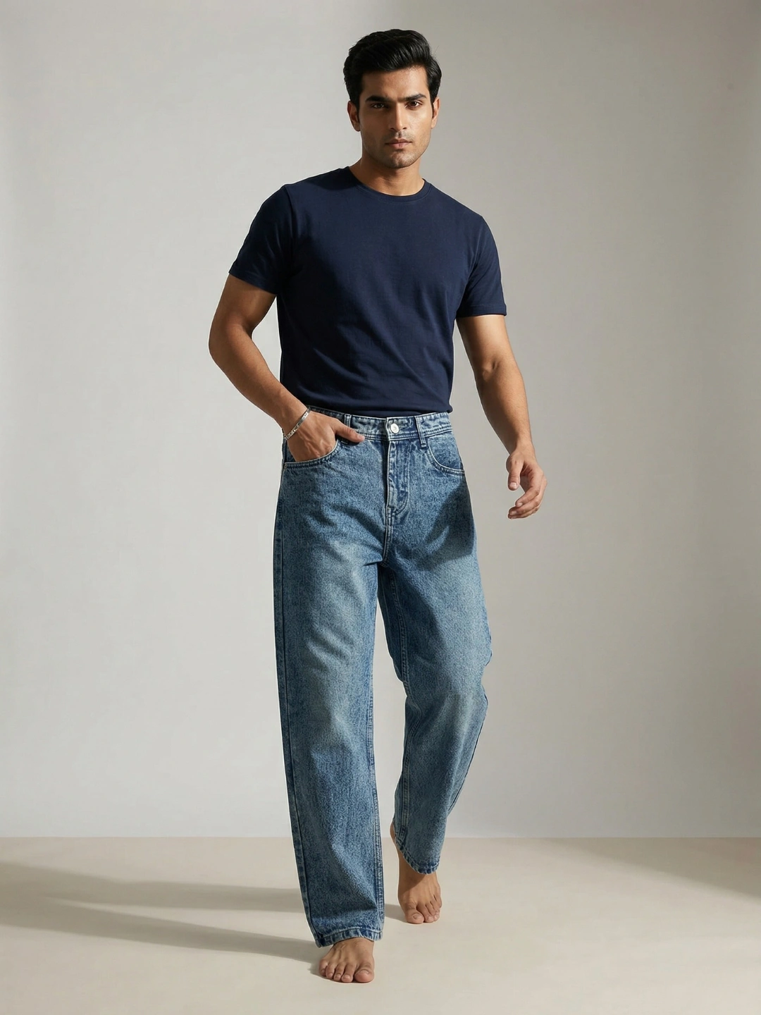 The acid-washed ice blue finish gives a bold, vintage-inspired look, making it stand out from regular denim. With premium stitching details on back pockets and durable construction, these jeans are built to last while keeping your style game strong.